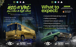 Once again headlining the event is the Lowrider Car Show featuring Unfinished Business Car Club, bringing custom builds, hydraulics, and that unmistakable lowrider energy that's become a signature of VRC's 4/20 celebration. Joining the festivities this year is the Twerkulator Bus, adding an extra layer of block party energy to an already stacked lineup.