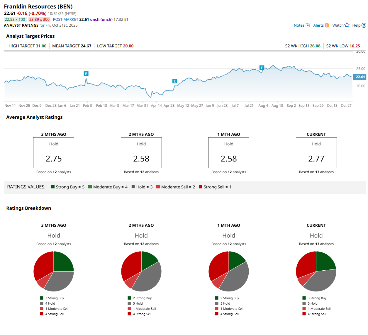 The mean price target of $24.67 represents a 9.1% premium from BEN’s current price levels, while the Street-high price target of $31 suggests an upside potential of 37.1%.
