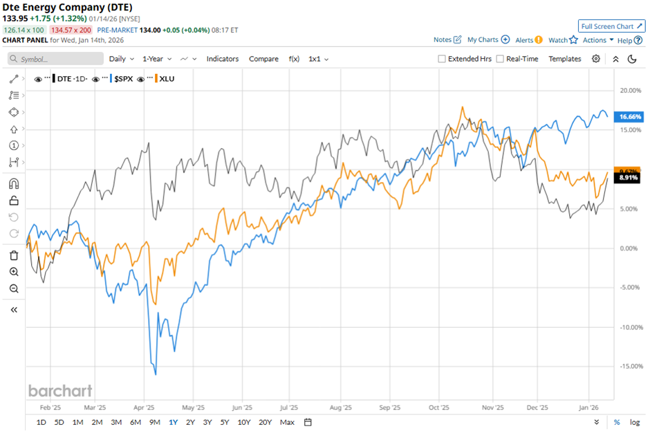 DTE stock has gained 12.2% over the past 52 weeks, lagging behind the S&P 500 Index's ($SPX) 18.6% return and the State Street Utilities Select Sector SPDR ETF's (XLU) 14.1% rise over the same period.