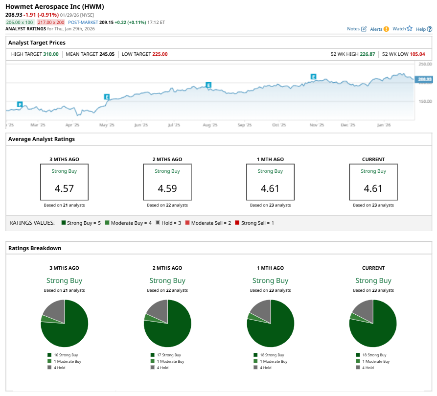 On Jan. 13, TD Cowen analyst Gautam Khanna maintained a “Buy” rating on HWM and set a price target of $240, implying a potential upside of 14.9% from current levels.