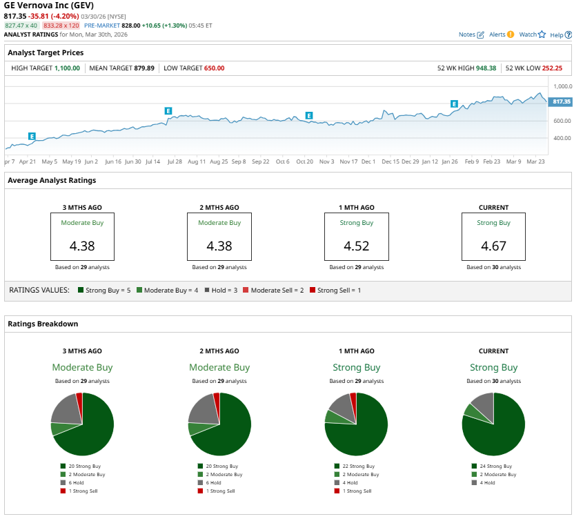 GE Vernova (GEV) stock has rallied strongly over the past year, driven by strong demand amid an evolving power and energy infrastructure landscape. Although GEV stock has maintained positive momentum in 2026 and remains up about 32% year-to-date (YTD), it has recently declined about 10% from its all-time high of $948.38. Considering the solid demand environment, expanding backlog, and improving profitability outlook, this dip presents an entry point for investors.