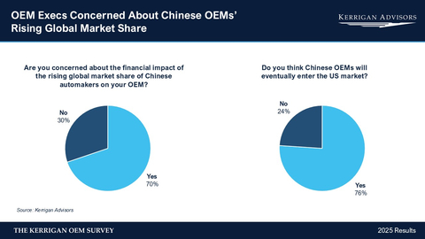 - 70% of OEM executives surveyed are concerned about the financial impact of the rising global market share of Chinese auto manufacturers.
