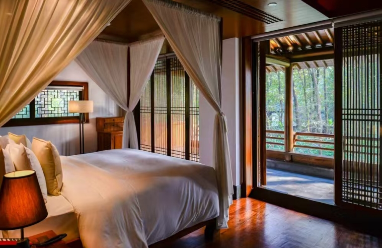 The village-style architecture faithfully preserves the understated elegance of traditional Zhejiang residential design. Every guest room is a unique original, scattered among the forested hills of Santai Mountain, transporting guests into the nostalgic dreamscape of West Lake's misty past. Interiors are furnished with custom-made rosewood pieces, their subtle, woody fragrance greeting you the moment you open the door. Warm and refined, the décor embeds classical Chinese aesthetics into every detail. The rooms are havens of tranquility; push open the window to behold sweeping garden views, or soak in a freestanding tub beside the window and savor your private, living landscape painting. Watch the pines and bamboo sway by day, then drift off to sleep beneath the stars and moonlight. Unobtrusive 24-hour butler service ensures every need is met with quiet discretion and heartfelt care, redefining luxury hospitality through understated perfection.
