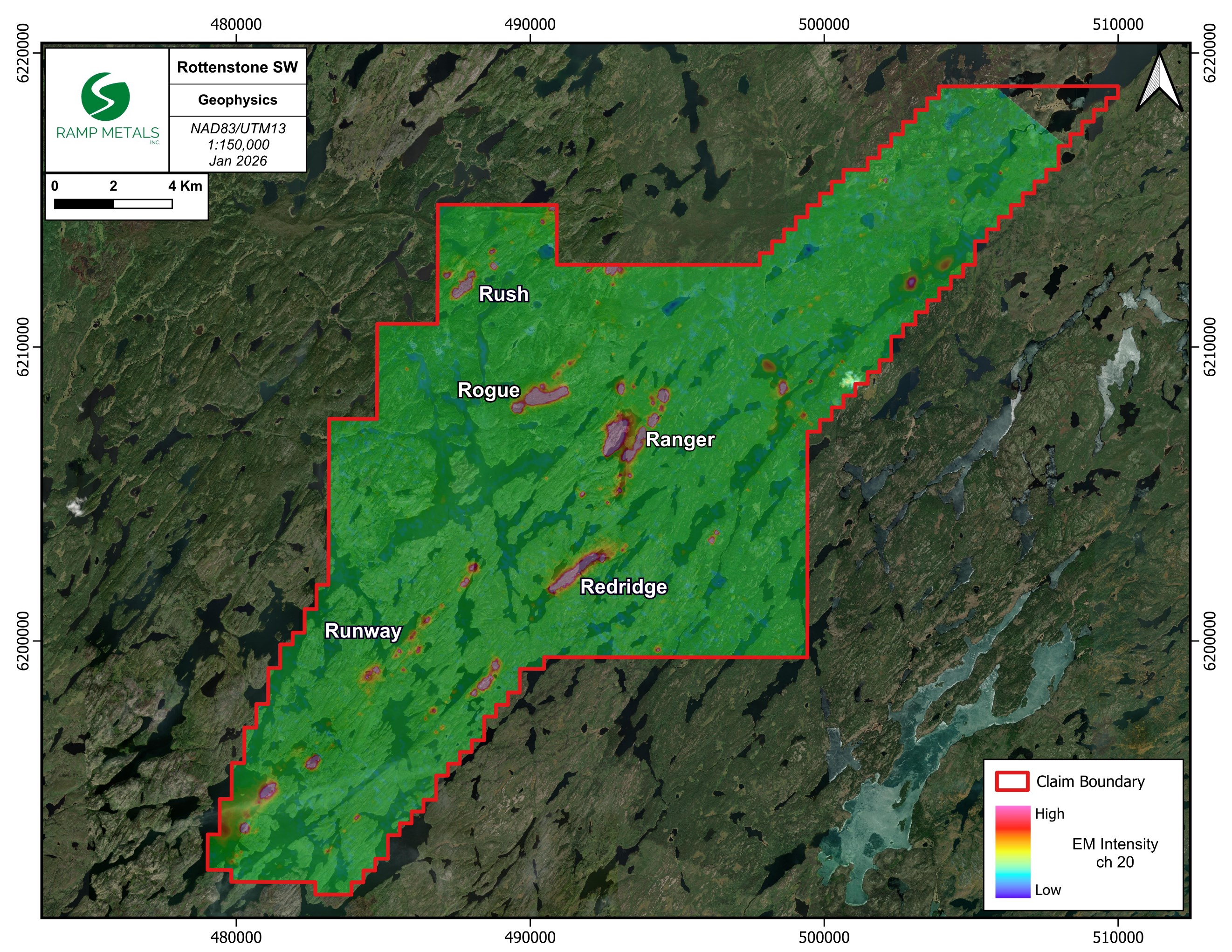 The Company will focus on its main targets Rush, Ranger, Redridge and Runway (Figure 1) as previously described in the Ramp Metals January 15, 2026 press release.