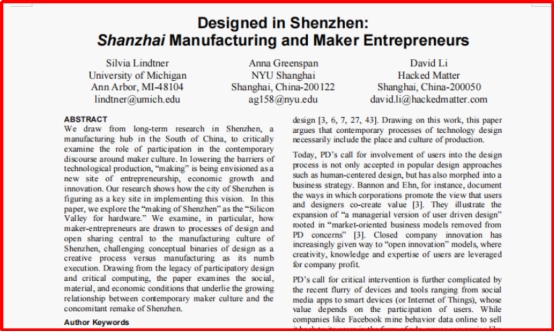The contents of “Designed in Shenzhen: Shanzhai Manufacturing and Maker Entrepreneurs