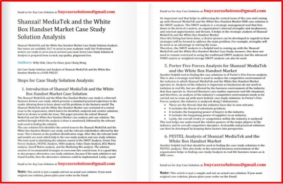 Shanzai! MediaTek and the White Box Handset Market Case Study Solution Analysis