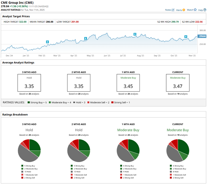 Last month, analysts at Deutsche Bank upgraded CME’s stock from a “Hold” to a “Buy,” while raising the price target from $266 to $300, based on the company’s strong Q3 results. This also reflects Deutsche Bank’s confidence in CME’s growth prospects, especially in the prediction markets.