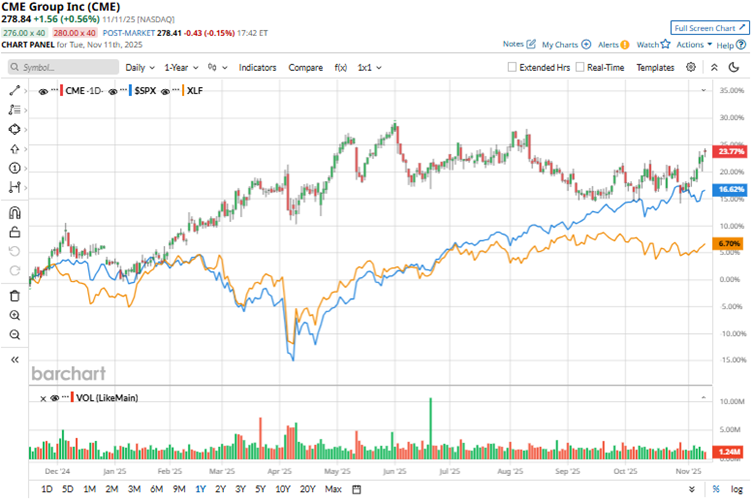 On Oct. 22, CME reported its third-quarter results for fiscal 2025. The company’s revenue dropped by 3% year-over-year (YOY) to $1.54 billion, aligning with Wall Street analysts’ estimated figure. CME noted that its clients continue to trust its services amid market uncertainty, which led to the company recording its second-highest third-quarter average daily volume (ADV). Its adjusted EPS remained flat YOY at $2.68, surpassing analysts’ estimate of $2.63.