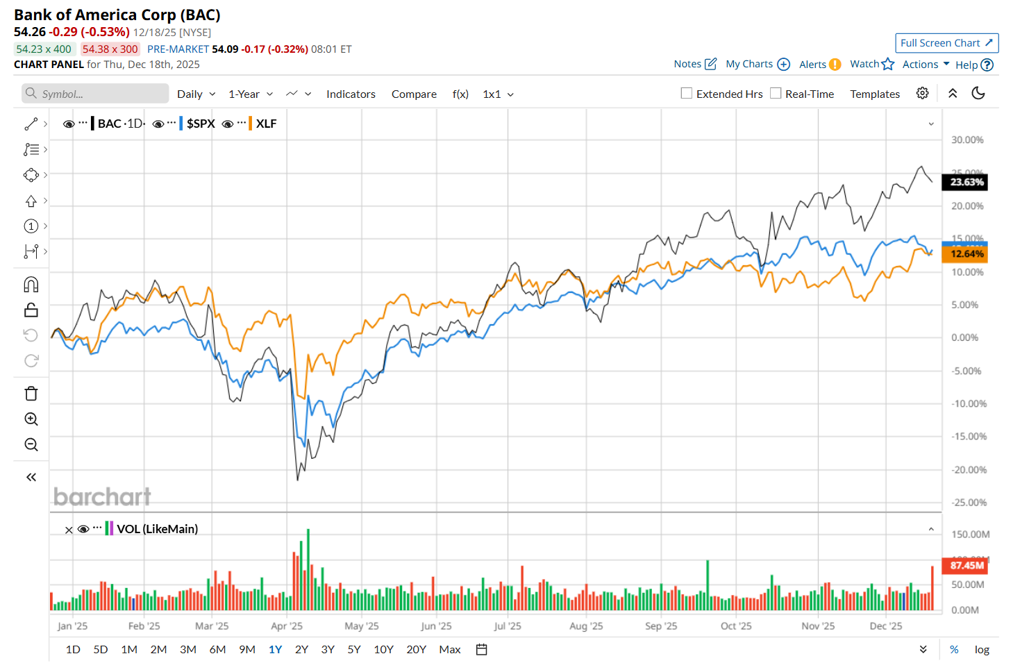 Shares of BAC have surged 24.7% over the past 52 weeks, outpacing both the S&P 500 Index's ($SPX) 15.4% return and the State Street Financial Select Sector SPDR ETF’s (XLF) 14.5% uptick over the same time period.