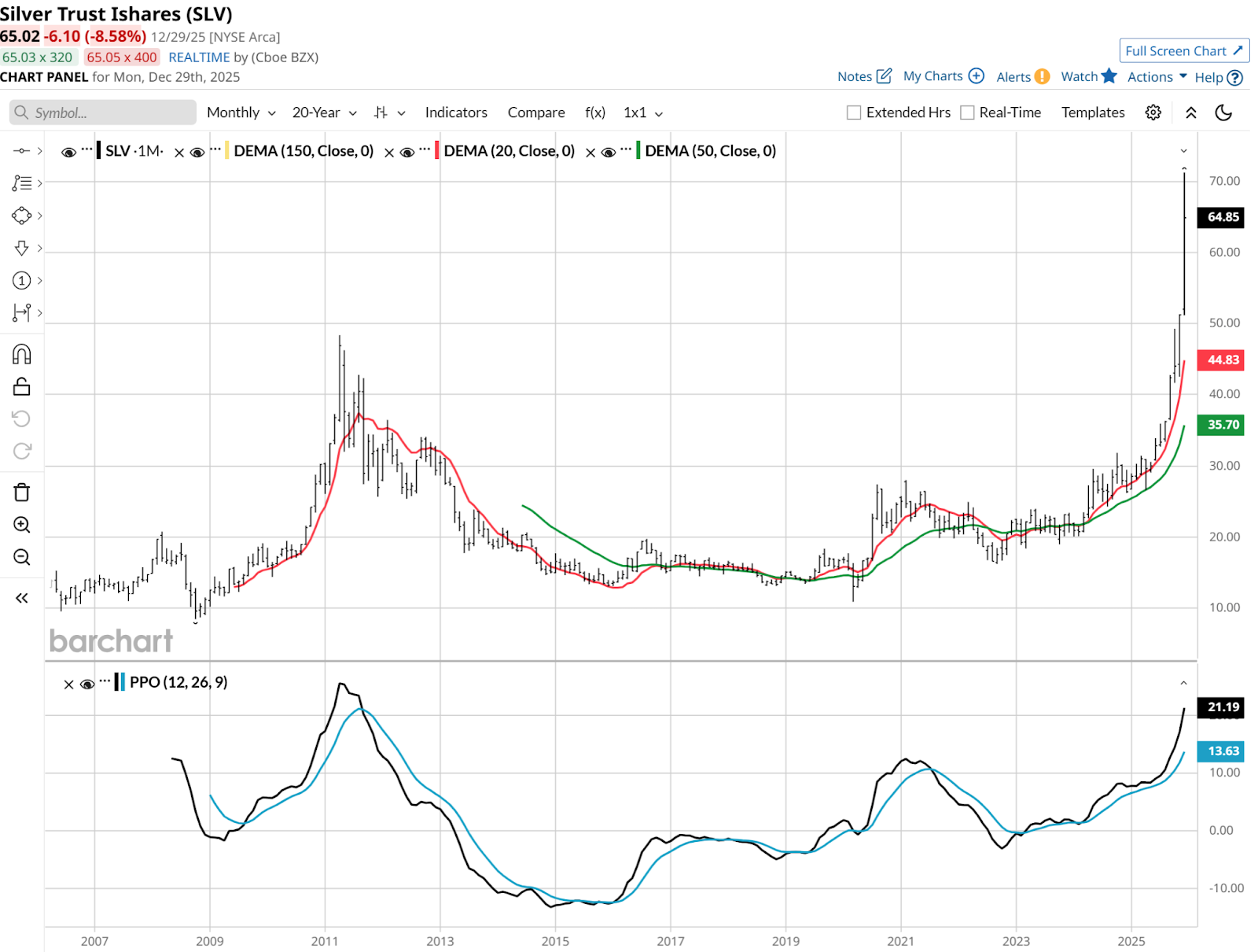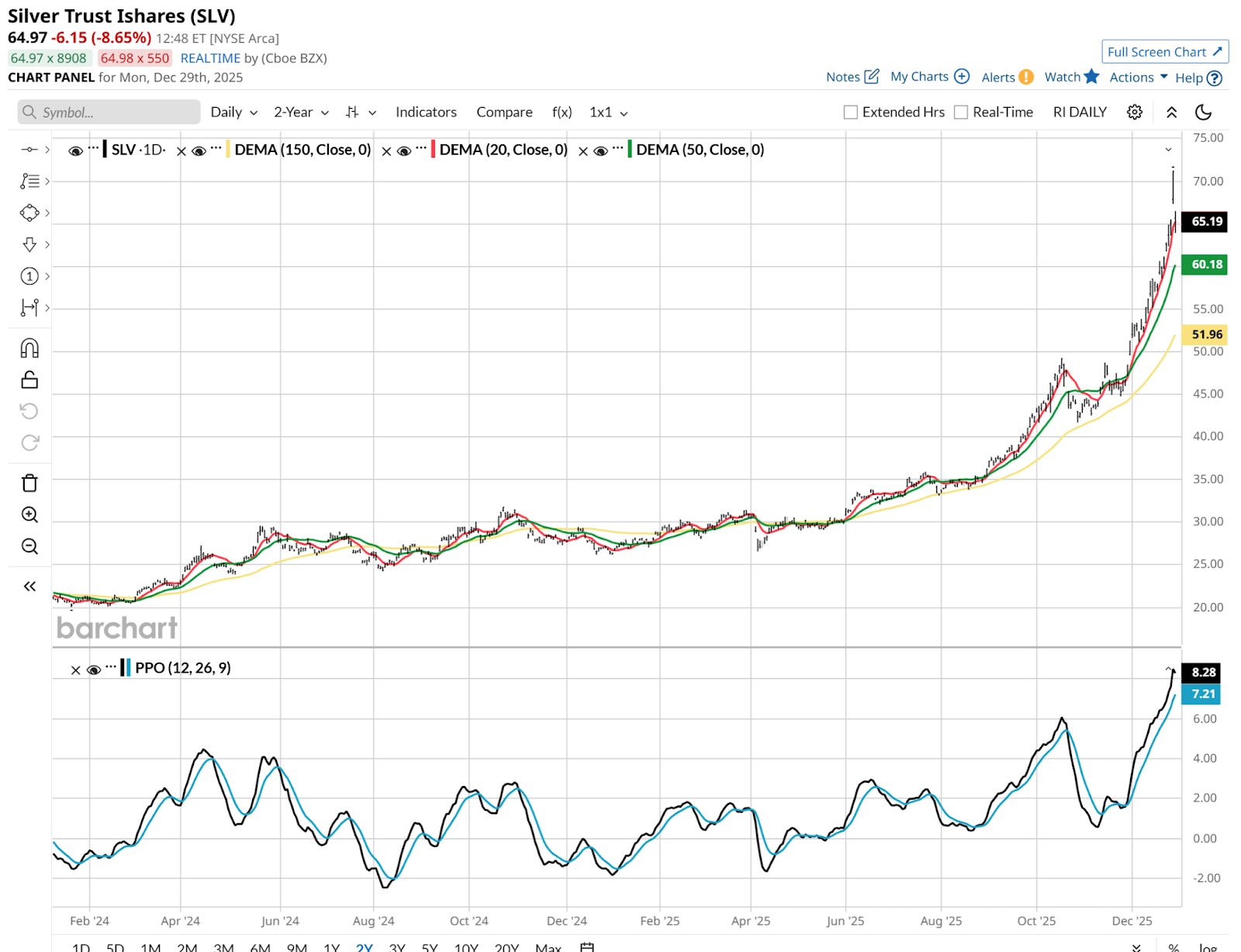 Even after Monday’s intraday 9%-10% pullback, SLV is up more than 140% during 2025, with just a few days left.