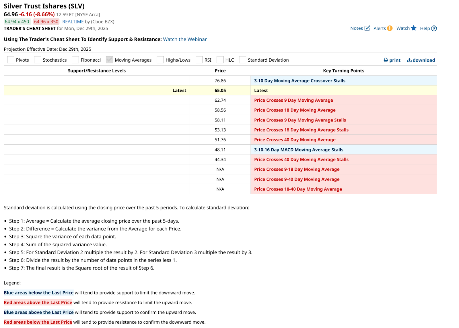 We see in this table below that a lot of moving average crosses occurred on Monday. So that at least needs to be respected. The flip side of that for SLV is that algos and retail investors don’t tend to “respect” what worked in the past as much these days. Otherwise, SLV would not have made the move it did.