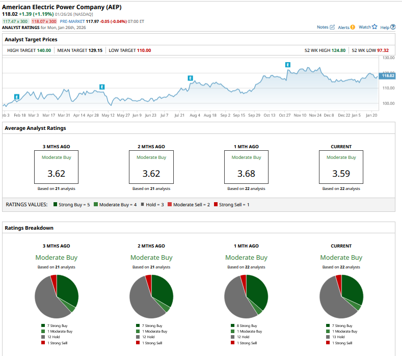Sell-side analysts are not as bullish, though, and AES has a consensus rating of “Moderate Buy” from the 22 analysts polled by Barchart. The stock’s mean target price of $129.15 is just about 9.4% higher than the Jan. 26 closing price.