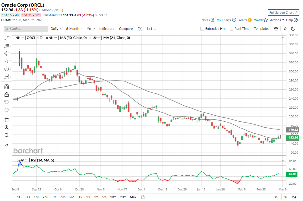 Oracle (ORCL) will release its third-quarter fiscal year 2026 results today after the market closes. Notably, ORCL stock has suffered a dramatic correction in recent months. Shares have fallen more than 55% from their 52-week high of $345.72, erasing any artificial intelligence (AI)-driven gains.