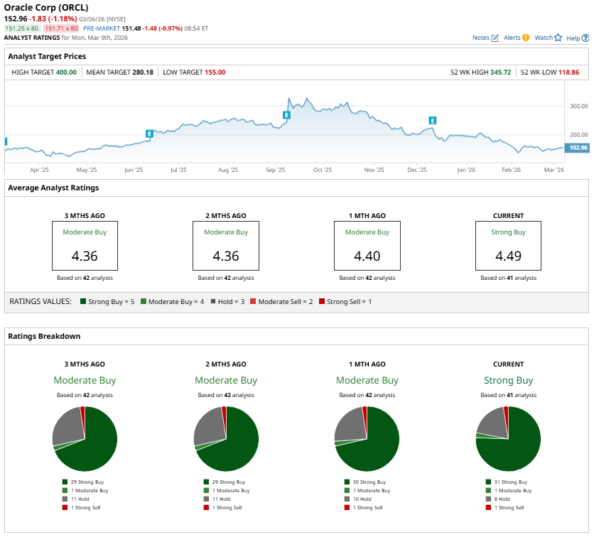 Further, the recent drop in Oracle’s share price has made the valuation more attractive compared with earlier levels. Many analysts remain optimistic about the company’s prospects and currently assign a “Strong Buy” consensus rating to the stock ahead of the Q3 earnings.