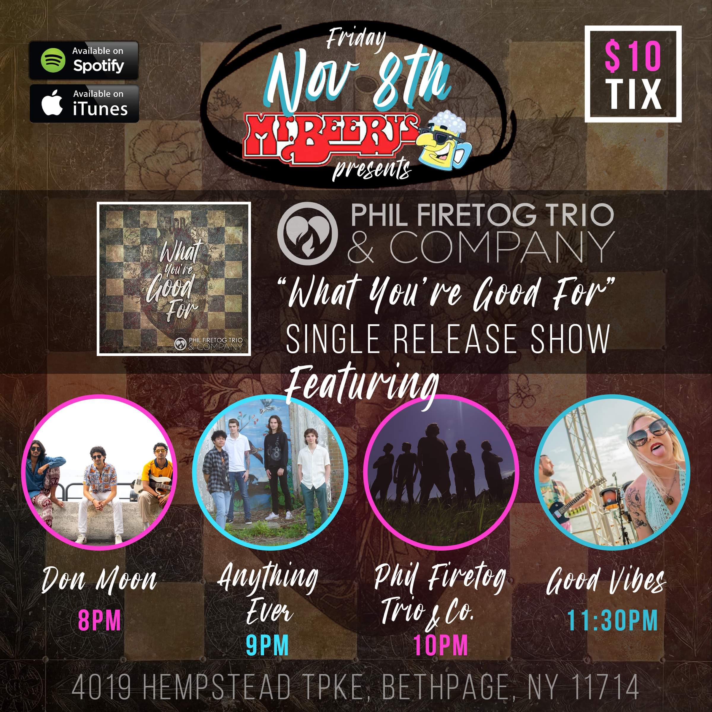 Long Island, NY - Firetog & Co., formerly known as the Phil Firetog Trio & Co., embraces a new identity with the release of their genre-bending single, "What You’re Good For," out today, November 8, 2024. This captivating track serves as an anthem for anyone who has faced the intoxicating cycles of toxic love. With powerful lyrics and immersive instrumentals, "What You’re Good For" dives deep into the emotional games that define many modern relationships. Firetog & Co. brings their new release to life tonight at Mr. Beery’s in Bethpage, NY at 10 p.m., with special performances by Good Vibes, Anything Ever, and Don Moon.