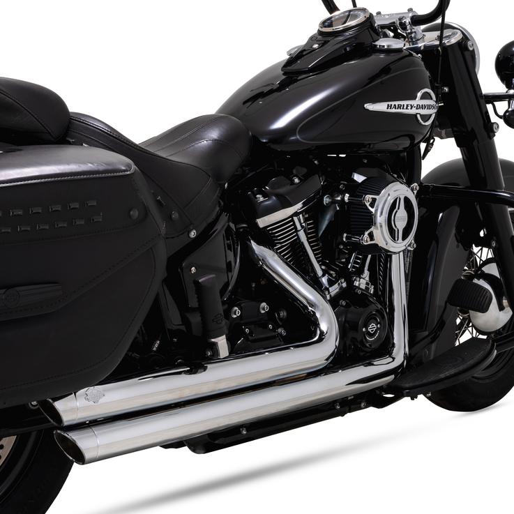 The Vance & Hines exclusive Power Chamber Exhaust technology uses a high-flow double-matrix catalyst that improves torque delivery through the mid-range RPM, which delivers more responsive acceleration. The catalyst positioning is deeper into the exhaust system moving catalyst heat further away from the rider and improving rider comfort over a stock system. The new technology produces an even deeper full-throated rumble while retaining the sculpted styling of each of the exhaust systems.